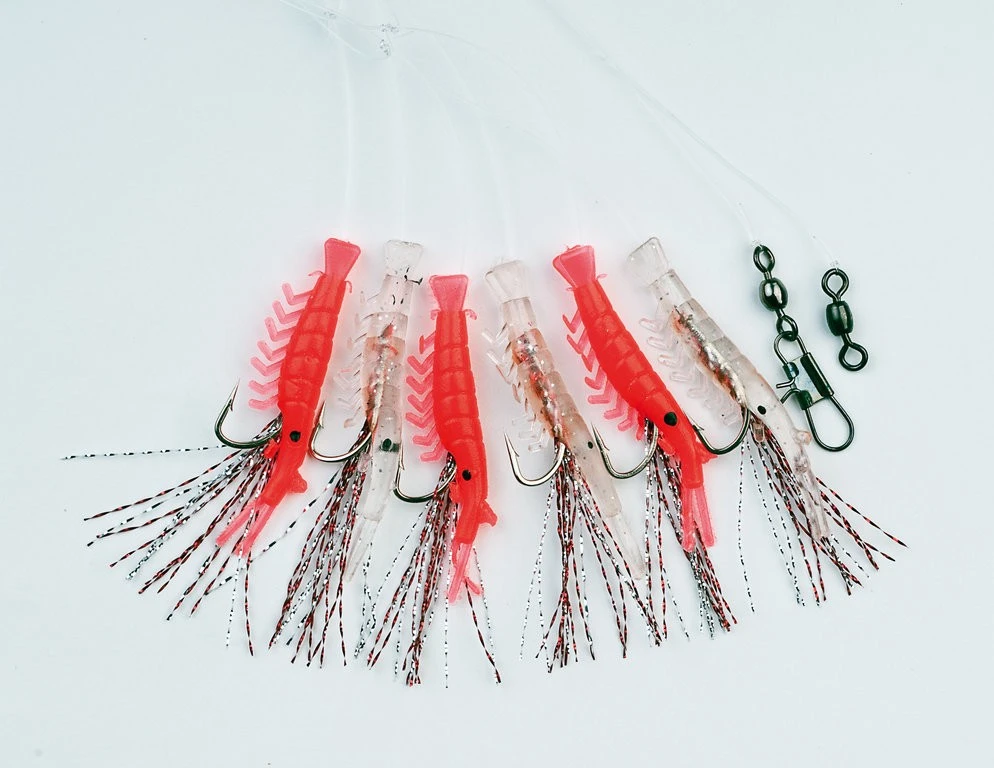 Dieses sehr fängige Rig besteht aus 6 Mini-Shrimps. Drei davon sind in der Farbe japanrot und drei in transparent gehalten. Befestigt sind diese an einer 0,35mm starken Schnur, welche mit einer 0,40mm starken Hauptschnur verbunden ist. Die Länge des Vorfaches beträgt 150cm.