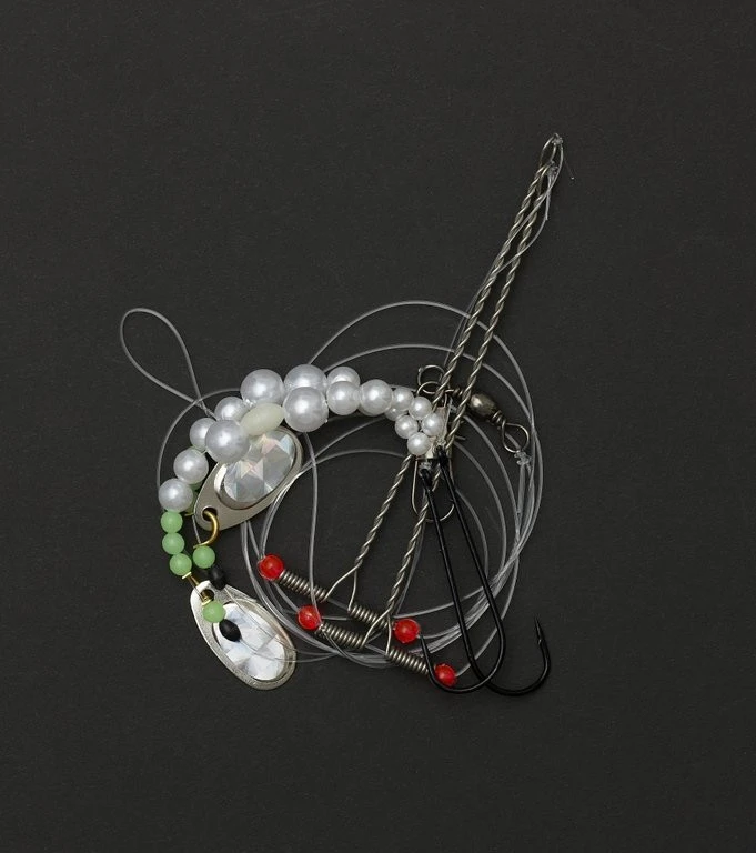 Dieses Plattfischvorfach hat eine Länge von 75cm und besteht aus einer 0,55mm starken monofilen Hauptschnur und einer 0,45mm Mundschnur. Die Hakengröße beträgt 2/0.