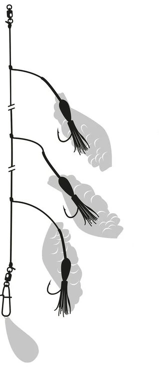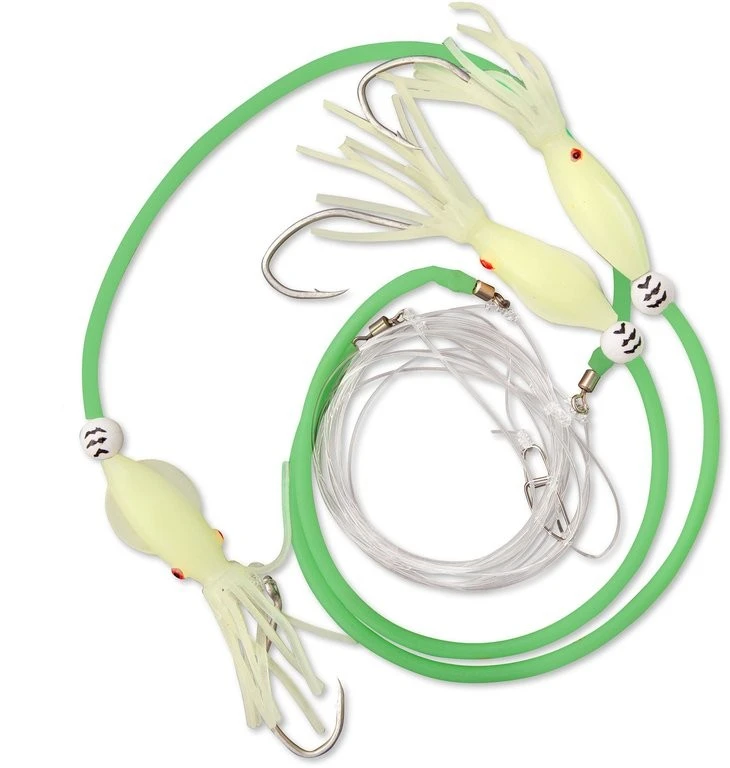 Dieses Seehecht-Vorfach besteht aus 3 Einzelhaken Systemen mit je einem Einzelhaken der Größe 10/0 für einen Fischfetzen, sowie selbstleuchtenden Komponenten wie Schlauch und Oktopus. Die Hauptschnur hat ein Stärke von 1,00mm mit einer Tragkraft von 50Kg. Die Gesamtlänge beträgt 330cm. Das Vorfach ist ideal für das Bootsangeln auf Seehecht. Die Lieferung erfolgt auf einem runden Aufwickler.